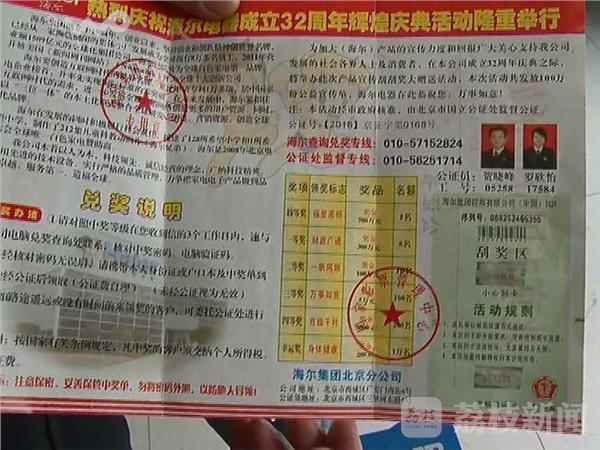 5月14日下午5点多钟,住在南京鼓楼区五塘村市民赵师傅老两口来到幕府山派出所,向民警求助,说自己莫名其妙中了一个大奖,而且是一百万,据赵老师傅讲:自己和老伴都80岁人了,今天在报箱里捡到一封信,赵师傅打开一看,发现是一张海尔集团成立32周年刮奖单,赵师傅试着刮开一看,发现自己中了一个大奖,一百万,赵师傅非常疑惑,自己北京也没有亲戚,而且家里也没有什么海尔电器,这奖中的太大,看看上面还有公证员,赵师傅与老伴不放心就来到幕府山派出所,民警刘帅一看就知道这些骗子的惯用伎俩,就告诉赵师傅,不要相信这些中奖信息,这样就不会上当!赵师傅说,自己和老伴都80岁人了,当年自己对红头文件非常相信,没想到现在骗子全用红头文件。