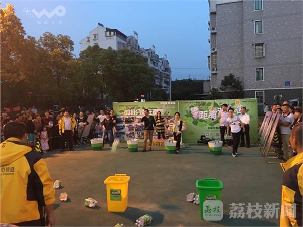 荔枝新闻记者今天(5月15日)从西善桥街道办事处获悉,南京市城管局联合“南京零距离·欢乐送”栏目组来到福润雅居市民广场举行“垃圾分类进社区”的现场活动。活动中精彩的节目表演和游戏环节博得了现场观众一阵阵的欢笑和掌声,穿插的知识竞答更引得居民争相举手,踊跃抢答。