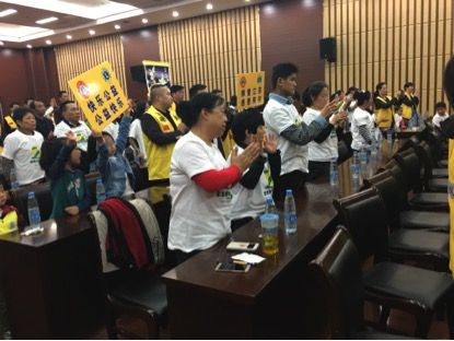 智障人士“小蜗牛”们上台展示自己的梦想卡片