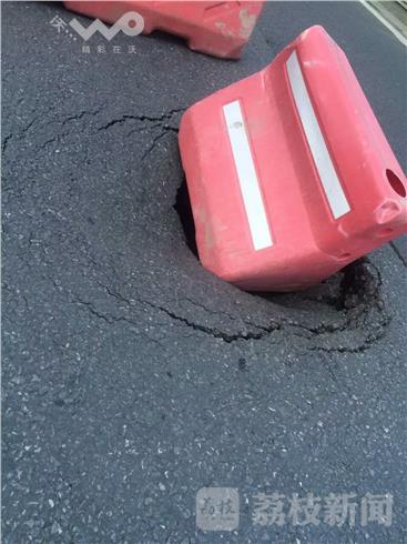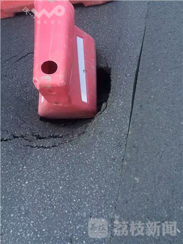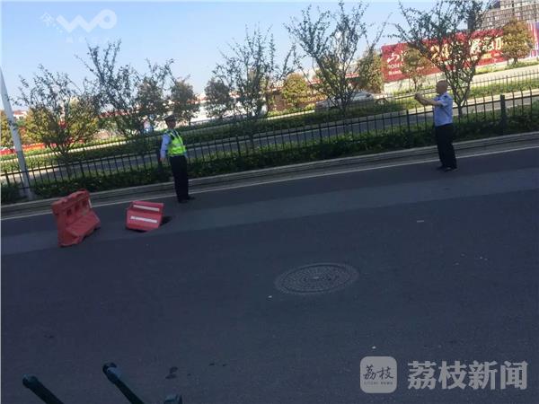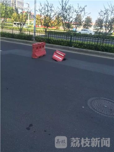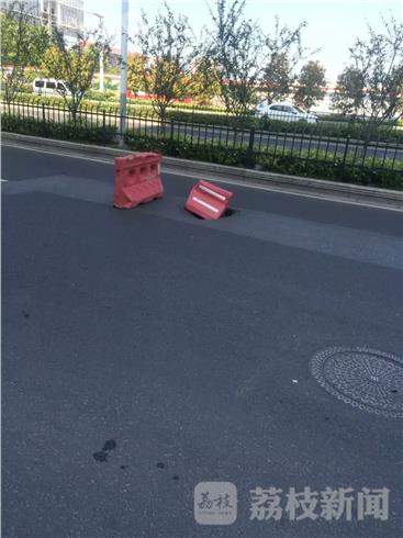 今天(5月16日)下午,南京江东中路德盈大厦楼下慢车道路面现一个约一平米左右的坑洞,目前,交警已经到现场用用塑料隔离栏暂时阻塞住洞口,在此也提醒过往车辆注意安全。