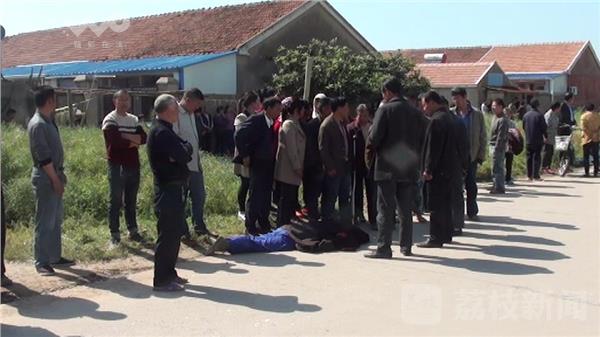 在现场看到,盐城射阳县公安局交通巡逻警察大队的民警正在勘查现场。一名身穿深色衣服的男子倒在水泥路面上,已无生命迹象。北侧大约三十多米一辆载满沙石的农用拖拉机,车头向北停在路上。