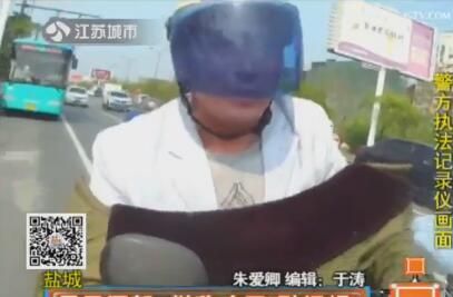 警方执法记录仪显示,在建军东路和长亭路路口,警方拦下一名满嘴酒气,骑车带人的光头男子。因为男子骑车摇晃,执法民警怀疑其喝了酒,不过男子却矢口否认。