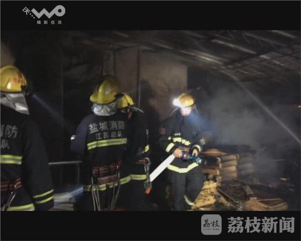 5月17日凌晨1时许,位于盐城市盐都区潘黄街道镇北路一家木材厂起火,火灾发生后火势很快蔓延,并烧穿房顶导致坍塌。接到报警后,当地消防部门及时赶赴现场进行处置。在火灾事故现场,只见起火的木柴厂内已经是一片火光,大火不时向周边蔓延,一连多间的易燃民房一度受到火势的威胁。由于现场可用水源比较少,消防队员一面控制火势,同时寻找周边可利用的水源,并在火场南侧利用一支水枪打击火点阻止火势蔓延,三名水枪手从北侧打击外围火点并阻止火势。为加快灭火的进度,现场调集挖机对北侧墙体进行了清理。最终,经过近1个小时的处置,现场火势得到有效控制。目前,火灾具体原因及损失正在进一步调查之中。