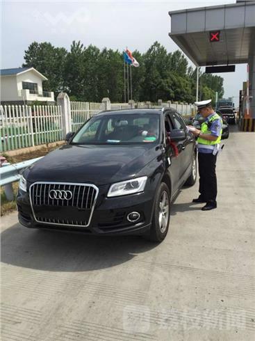 今天,2016年5月18日,南京交警高速十二大队民警徐扬威在和风收费站执勤时,发现一辆奥迪越野车没有牌照,车窗上贴的临牌从外面看并不清楚,民警将车辆拦停进行检查。