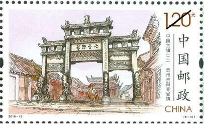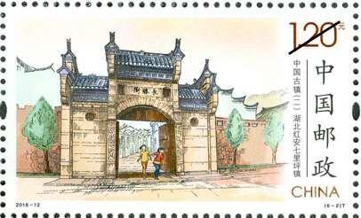 据了解,本次发行的邮票以“古镇”为主题,分别是江苏姜堰潼镇、湖北红安七里坪镇、贵州贵阳青岩镇、上海青浦朱家角镇、安徽肥西三河镇以及广西昭平黄姚镇,1套6枚,全套邮票面值7.20元。