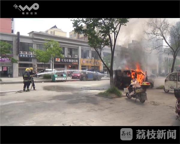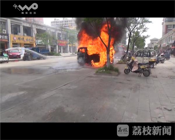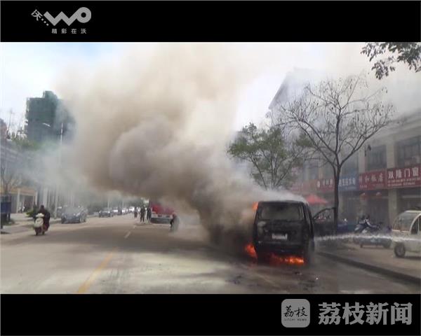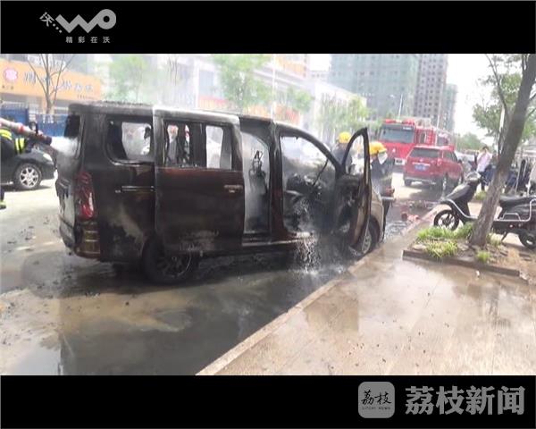 5月18日下午13时,盐城市滨海县江南新城东侧门前,一辆行驶中的小型面包车突然起火,火势一下子就大了起来,由于燃烧猛烈,火苗很快将整个车身包围,现场的浓烟一度飘到数米远,而火势也持续了近一刻钟的时间。当地消防部门赶到现场后,随即利用水枪对火势进行了控制,在扑灭明火的同时对油箱进行了冷却,随后一组队员对发动机部位进行了清理,并强行打开了引擎盖进行降温。最终,经过近20分钟的处置,火势才得到基本控制,但是起火的面包车烧毁严重,车头部位只剩下了空壳。