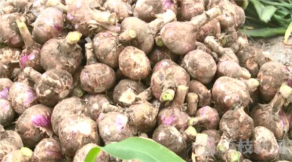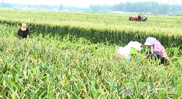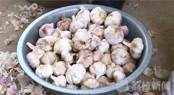 江苏大蒜产地徐州邳州市今年新蒜喜获丰收,蒜农张家田喜不自禁,他家今年种了5亩大蒜,亩产达3千多斤,收购价格每斤比去年上涨1元左右,达2.3元左右,亩产收入7、8千元。