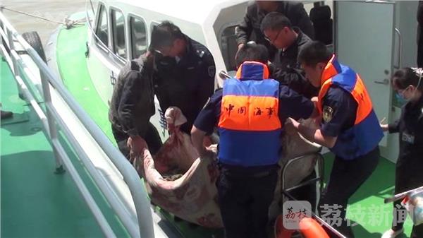 经一小时左右的全速航行,海巡艇于下午1点左右回到射阳海事趸船,并将伤员抬上在码头等候的120急救车,送至盐城专科医院治疗。