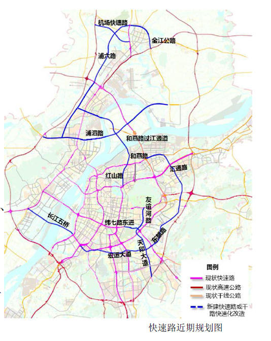 完成纬七路东进、红山路快速化改造、和燕路快速化改造、江山大街 - 宏运大道 - 东麒路 - 汇通路快速路建设,实施六合机场快速路、浦六路、长江五桥、浦泗路、友谊河路 - 天印大道建设。