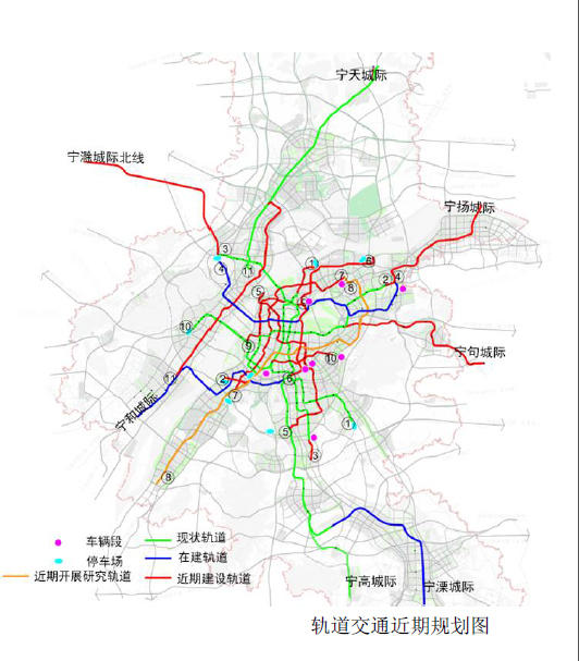 计划建设轨道 11 号线、4 号线二期、2 号线西延、9 号线一期、10 号线二期、1 号线北延、6 号线、7 号线、5 号线、3 号线南延工程;建成宁和一期、宁高二期、宁溧城际,开建宁扬城际、宁天城际南延。