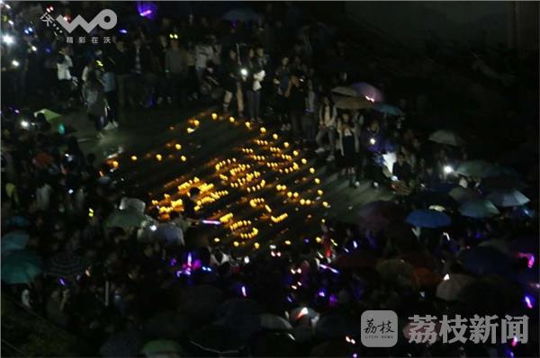 一年一度的“5.20”,南理工学生展现了不一样的毕业情怀。夜幕降临,阵雨淅淅。该校丰碑的台阶却有微醺烛光摆出的“520”字样,喷泉广场也聚集了越来越多前来纪念青春的同学。当晚9点30分,遥望的南区三栋宿舍显示出“5”、“2”、“0”的字样,人群的聚集处蹦出一发发气球雨,抛向空中荧光棒和阵阵欢呼声预示着正有人在告白。晚上9点50分左右,宿舍楼的灯幕又变成了“飞”、“扬”等字样。台阶上的同学们打起手机闪光灯,边歌唱这毕业的不舍边挥舞着双手。