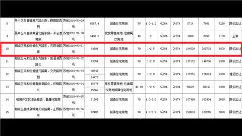 相比于这两幅地块竞拍得不温不火,高新区浒关的两幅地块竞争激烈。位于桑园路的39号地块起拍楼面价为6656元每平方米,经过113轮竞价,楼面单价达14067元,溢价率达111.33%,超过最高溢价率110%,最终按照苏州出台的土地限价令流拍。同样位于浒关罗家湾路的41号地块,经过120轮竞价后,楼面单价为15071元每平方米,价格也远超限价,交易中止,竞价结果无效。