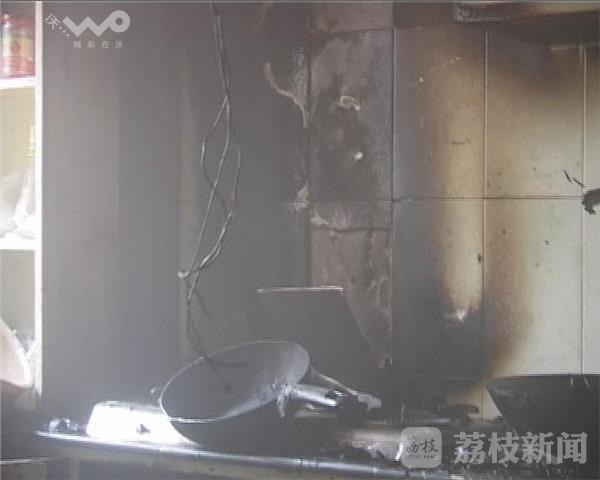 现场看到,因为油烟机管道里油渍太多,起火后厨房内灶台、灶具、橱柜等均已被大部烧成灰烬,火灾后厨房内一片狼藉。起火后,幸亏消防队员第一时间搬出家中的液化汽钢瓶,否则一旦引燃爆炸,后果不堪设想。