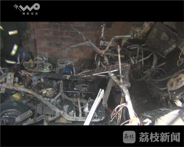 昨天早晨6点钟,苏州昆山柏庐南路枫景苑一车库发生火灾,火势处于猛烈燃烧阶段,有大量浓烟冒出。车库内存放了4辆电瓶车,且楼上有11名居民被困在屋内。消防分成两路,一路扑火一路疏散人员,30分钟后火势完全扑灭,居民全部安全疏散。经询问得知,车库内存放的电瓶车线路短路引发大火,14辆电瓶车全被烧毁。
