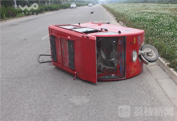 当天下午4点多,交警赶到现场时,肇事车辆已经逃离现场,受伤较重的三轮车上乘客已经被送往医院抢救。在现场看到,一辆红色封闭式电动三轮车侧翻在快车道上,地上有一些撞击后的刮痕,和一片血迹。
