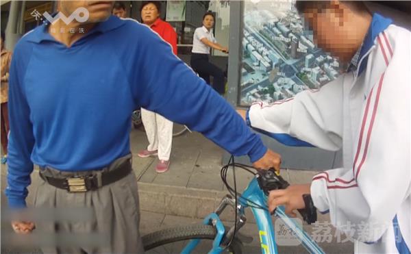 事发时,徐州泉山交警大队民警巡逻到中山南路解放桥路口,发现一名穿蓝色上衣的老年人,捂着正在流血的右手,而另一只手则拽着一名中学生的自行车。据老年人说,他骑自行车时,后面的中学生因为赶着上学车速较快,将他撞倒在地。