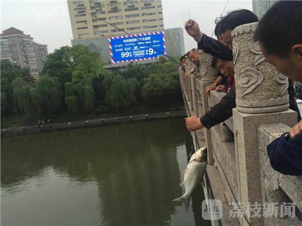 附近的市民看到这一现象,围在桥上,有的拿着鱼杆,把鱼钩放在鱼的嘴里,将鱼钓上来。有的拿来网兜,直接把鱼捞上来。这些鱼主要是鲢鱼和鳊鱼、鲫鱼等。