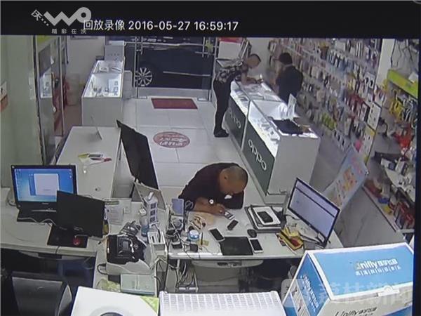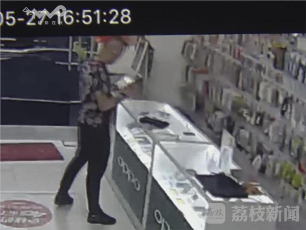 昨天(5月27日)下午,一名男子在南京鼓楼区安怀村468号附近的一家手机店内,顺手拿走了店主的一部手机,被店内监控拍了个清清楚楚。