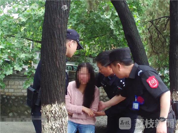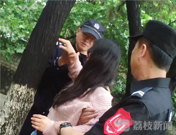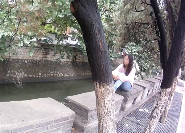 黄警官巡逻至泉山区玉带东街时,发现这名女子独自坐在河边的水泥台阶上哭泣,担心女孩一时想不开,黄警官一边向指挥中心汇报请求增援,一边慢慢接近并安慰女子,女子面对民警询问依然默默落泪,哭得非常伤心。