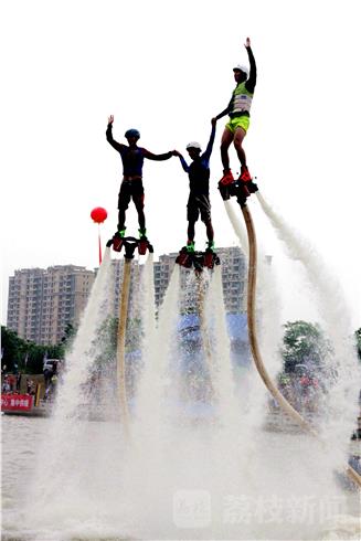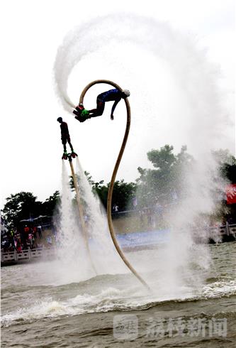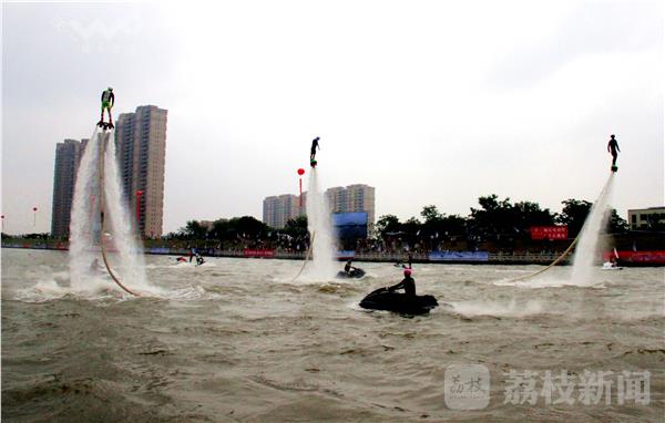 当日,数以万计的市民云集在古运河两岸,龙舟赛组织者请来了国家飞艇队员现场表演天空飞人和飞艇杂技,让龙舟赛精彩纷呈且看点多多,让观众目不暇接而流连忘返。