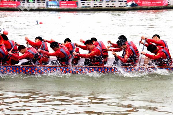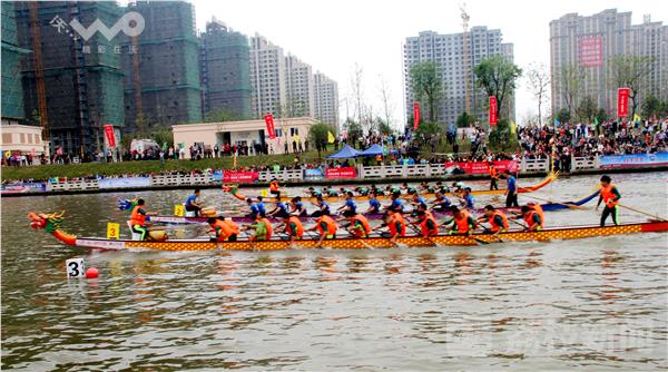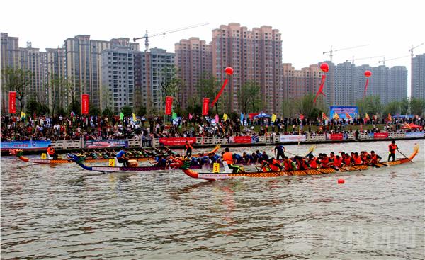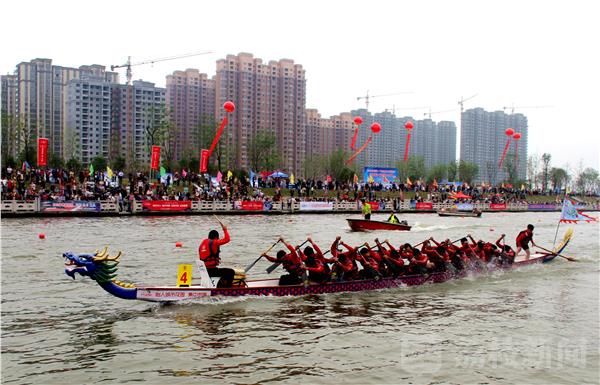 2016年5月29日,扬州古运河仪征槽河内,来自上海、浙江等地的龙舟队正在这里争夺2016年中国芍药节.江苏仪征城市龙舟赛名次。