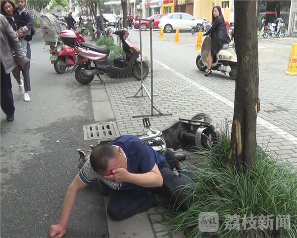 当天在解放南路,路人听到“咚”的一声,一名男子连同电瓶车已经倒在地上,男子一时没有爬起来,手捂着额头,额部出血,有人立即拨打120求助,随后好心路人将男子搀扶路边等待救援,男子面部额头有伤口流血,男子表示,自己中午喝了三杯白酒,骑电瓶车到这里人不听指挥,一下撞到树上,随后120赶到将男子送到医院治疗。