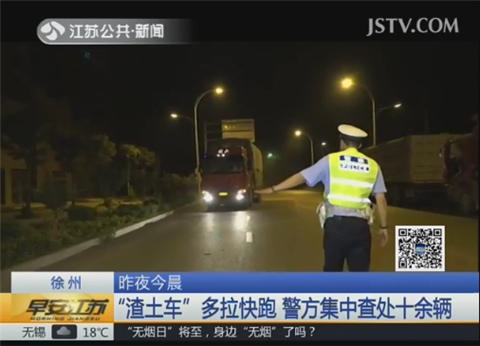 一些横行城市的渣土车 不仅严重超载,而且超速闯红灯,让市民们胆颤心惊。昨天晚上,徐州市交警在市区的关键道路,开展集中整治,共查处违法渣土车十多辆。