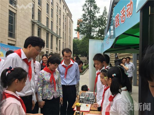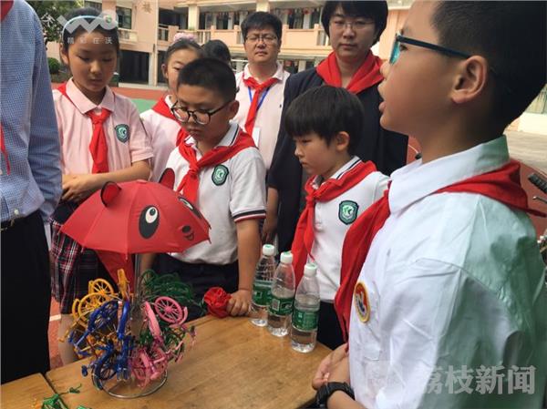 除了主题队会,南京各小学的孩子们还开展了“红领巾梦想十三五——'五小'”实践活动。“五小”包括:创新创造小院士、绿色环保小卫士、开放交流小使者、共享阳光小伙伴、德智体协调小达人。其中,创新创造小院士的小发明人气最旺。南京市北京东路小学学生 卞知微、卞知彰兄弟倆介绍说:“能不能一边购物、一边结账,所以就发明了这辆车子,我们只要拿商品,然后摁这个健扫码,这边就可以显示单价和总价。”