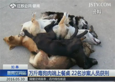 近日,一起特大制售有毒狗肉案件在南通如皋人民法院宣判。该系列案件被告人共有22人,大量有毒狗肉、鸟肉流向安徽、上海、山东等省份,被端上了餐桌。