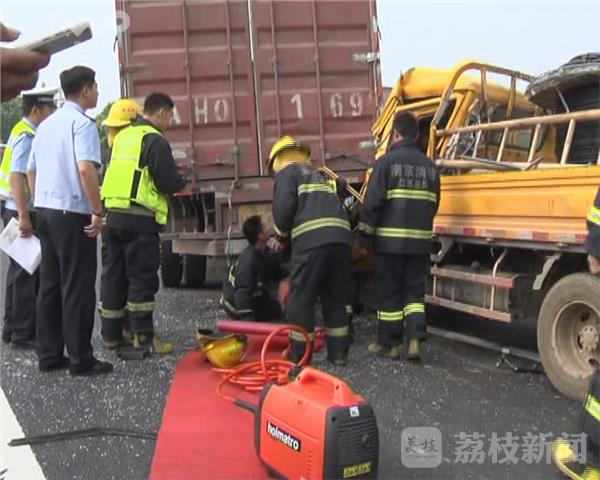 今天(5月31日)早上7:30左右,在江宁汤铜路的土桥段,有两辆车发生追尾事故,后车司机被卡车中,消防随后展开救援。