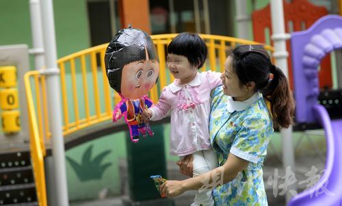 5月29日一早,记者在福利院见到了娟娟。刚刚修剪过的童花头,粉底白花的上衣,白裤子和崭新的皮鞋,娟娟一个人在院子里玩得很投入。保育员说,小姑娘现在胃口好了,除一日三餐外,一天还吃两次点心,人也胖了不少,刚入院时体重是12.8公斤。短短一个月,重了一斤。