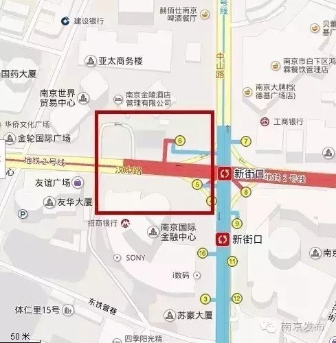3、秦淮区汉中路和上海路交叉口、金陵饭店门口