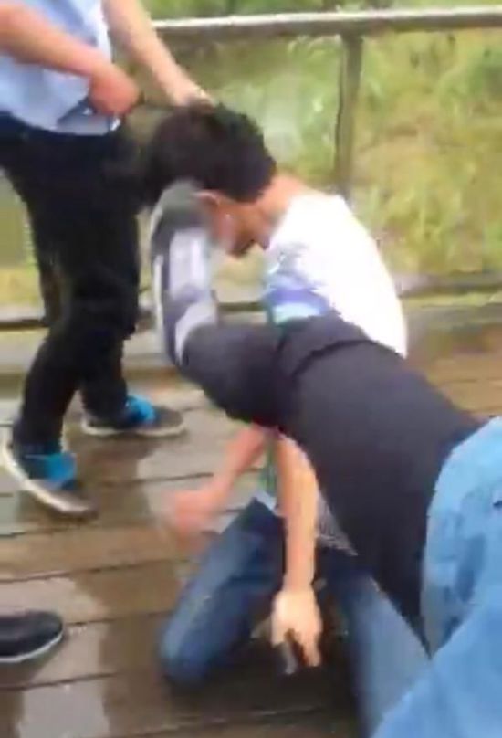 从视频中可以看到,事发地点是在一座木桥上,毗邻着一条大河。几个男孩不断叫着让这名少年认错。镜头中拍到的几个人说的都是启东方言,视频不是特别清晰,可能是用手机拍摄,拍摄者的角度一直没有改变。