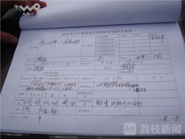 2015年4日禁渔期开始,一直专注观察并记录长江的江豚,他每天早晨8点半出发至晚上18点来回两趟从燕子矶到三汊河的江岸线,详细记录了江豚出没时间、发现地点和数量等情况。