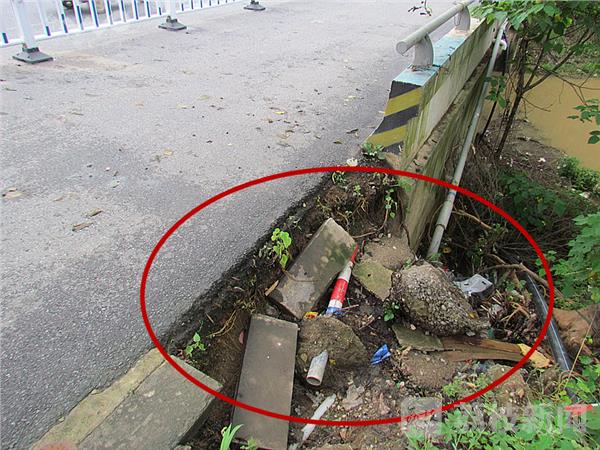6月1日下午,徐先生经过南京浦口沿山大道附近,发现桥头与路面连接处路牙护坡出现损坏现象,两根立在路边的红白相间的隔离桩也倒在下方。如今,我市已进入防汛关键时期,这样的情况存在安全隐患。