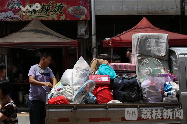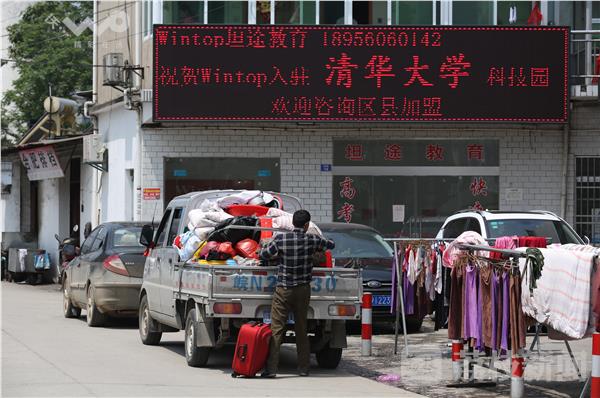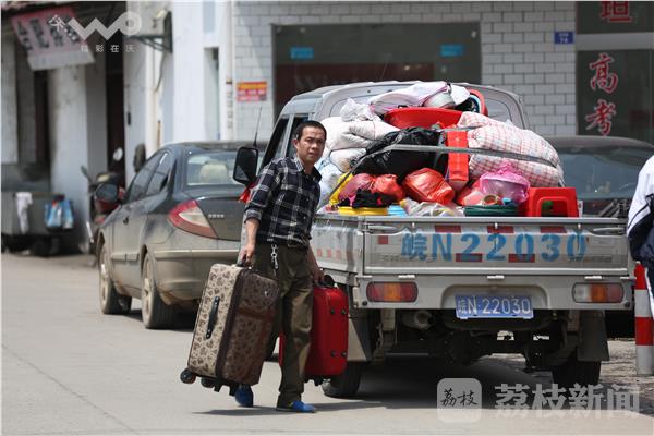 6月4日,在安徽省六安市毛坦厂镇,考生家长在搬运行李。安徽省六安市毛坦厂镇毛坦厂中学和河南省郸城县第一高级中学、河北衡水中学一样,被称为“高考梦工厂”。2016年全国高考,毛坦厂中学的数千名复读及外地考生将回到户籍所在地参加高考。近日,驻扎在这个“高考小镇”的考生和考生家长开始陆续撤离,回户籍所在地参加高考。