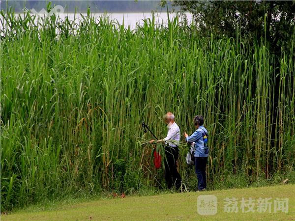 南京鼓楼区万景园长江岸边,一排排的芦苇,长势茂盛。端午将至,今天(6月5日)早晨,一些的附近市民喜爱采新鲜粽叶回家自己动手包粽子。家住河西的汤大妈称,马上就到端午节了,她是和老伴专程来采鲜粽叶的。家里每年包粽子的任务都由她一人承担,儿女们工作忙没时间,也不太会包。但是看着孩子们喜欢吃自己包的粽子她感到很开心。一位陈大爷也称,自己采摘的新鲜粽叶包的粽子味道清香,也适合家人口味,和购买现成的速冻粽子相比,他更愿意“麻烦”些,自己亲手包。包粽子也是一种传统风俗习惯,更是一乐趣。