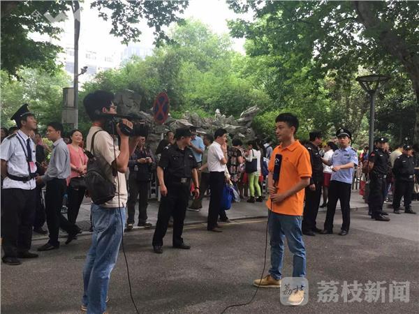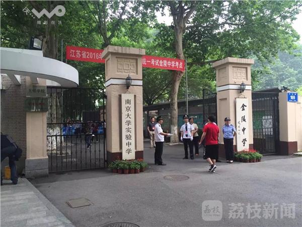 荔枝新闻记者在金陵中学考点看到,今年考生来的比较早,有不少考生都穿着了红色衣服,希望在早上第一场考试中能开门红,取得好成绩。
