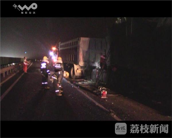 昨晚(6月6日)9点50分,徐州市铜山区距茅村出口两公里处,一辆大货车撞上护栏后侧翻,后方驶来的两辆车发现险情后,停在了应急车道上。但是第三辆车由于车速快,加上夜间视线不好,直接撞了前边的货车,造成两车上4人被困。经过消防人员的营救,把前车上两名男子,后车上一男一女救了下来。救援人员抬被困女性过程中,发现该女性腹部隆起明显,可能怀有身孕,同车男子则不幸遇难。目前,事故具体原因正在调查中。
