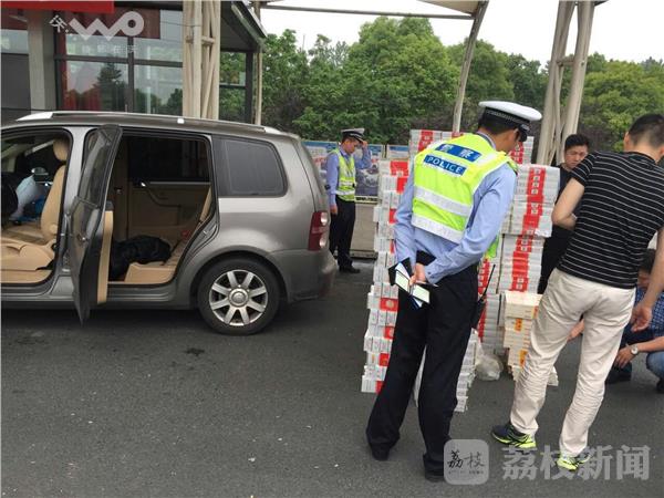 6月7日上午,南通交警支队高速4大队在苏通大桥北公安检查站对过往车辆进行例行检查时发现,一辆车牌号为苏AB25**南京牌照的大众轿车内装满了货物,打开后备箱发现该车涉嫌违反《烟草专卖法》违法运输倒卖香烟,执勤民警对该车进行了暂扣。