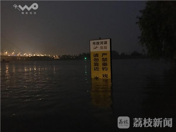 昨天(6月8日)晚上7时许,荔枝新闻网友经过南京鼓楼江边游玩时发现,江边许多亲水平台淹入水中,仅留下一些栏杆露在水面。江中“危险!请勿靠近,严禁垂钓、戏水”的提示牌虽部分淹没水中,但仍能看到提醒字样,尽管如此,仍有人冒着水流湍急的大水,穿着水衣走到江中钓鱼。