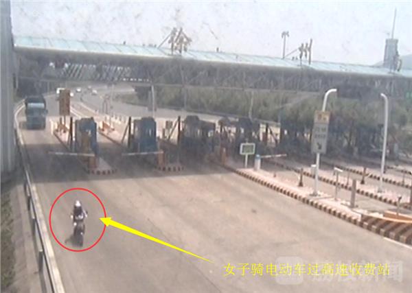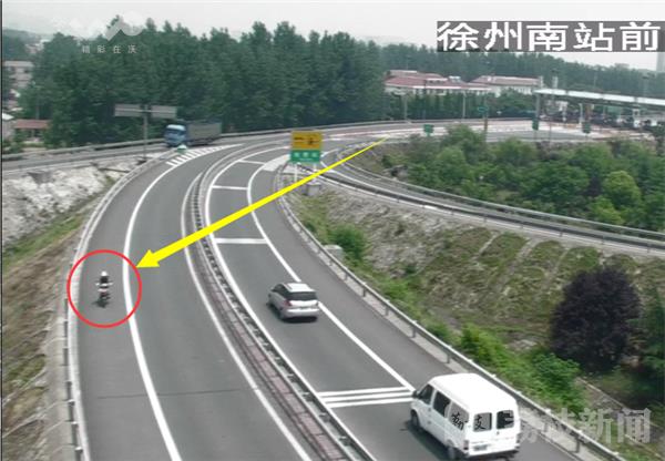 监控显示,有人骑着一辆电动自行车,从淮徐高速徐州南高速收费站道口,趁着收费员不注意,悄悄的溜上了高速公路,并沿着高速公路应急车道,一路往南行驶。