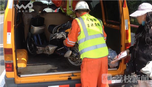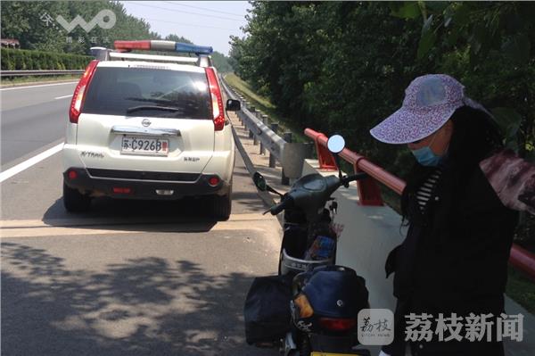 民警通过监控发现这一情况后,立即驾驶警车赶往现场,最终在淮徐高速南行186KM处,民警找到了这位骑电动车的女士,女士的电动车停在高速公路应急车道上,其电池已经耗完,车辆也无法继续前行。