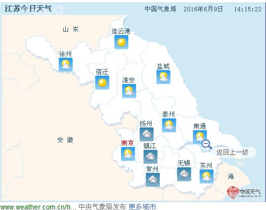 省气象台昨天(6月8日)14时05分发布了暴雨黄色预警信号。扬州南部、泰州南部、南通南部降水量都在50毫米以上,好在端午期间各地天气基本告别阴雨模式。今天苏南地区多云到阴,下午至夜间局部有阵雨或雷雨。明天,仍是局部有雨。天不算热雨不算多,这个端午小长假,大家该有个好心情。