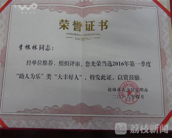 在活动进行中,来了一件不在活动计划内的插曲。原来,大丰白驹镇镇政府来人,递给了众心助困联合会副会长李根林先生一个证书,及一个里面装有现金的信封,这又是怎么回事?随后,白驹镇宣传委员陈东平同志一席话解开证书及现金之谜。原来大丰区众心助困联合会副会长李根林先生当选为2016年首季度“大丰好人“,由于李根林先生是白驹籍人,从而获得了当地政府一千元的奖金。白驹镇镇政府在得知李先生今天正好在该镇敬老院做爱心活动,于是特意驱车前来。当李根林先生接过陈东平同志手中的证书与装有钱的信封时,当即就将信封原封不动递给了,在一旁的敬老院院长陈金祥同志,并对在场的领导真诚的说道:“证书我就不客气的收下了,这钱就当是我们众心助困组织,给老人们改善生活的一点心意!”。很朴实的一句话,说出了大丰区众心助困联合会的精神:我为人人、人人为我,万众一心、共献爱心!