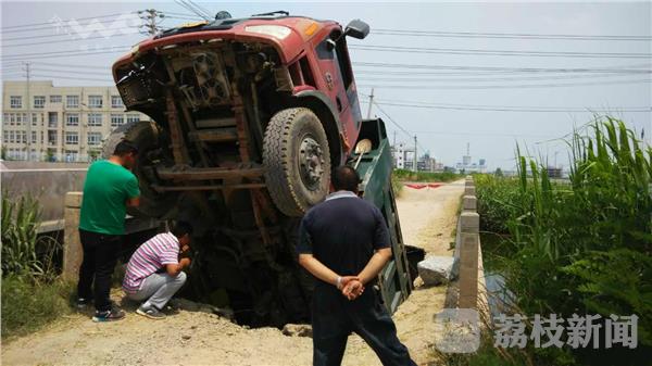 今天(6月9日)上午,响水县陈家港境内发生一起货车压断桥板事故,导致桥面塌陷,货车陷入断裂的桥洞之中。