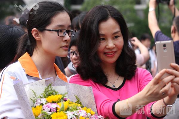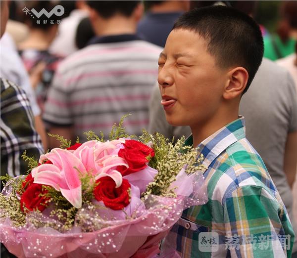 荔枝新闻网友在位于白下路的南京第三中学门前看到,面对众多在校门口等待的家长们,第一名走出考场的考生显得十分轻松,他和同学们有说有笑,并挥手向大家致意。许多考生家长则准备了鲜花早早地迎候在校门口,准备对孩子献上鲜花给他们一个惊喜。