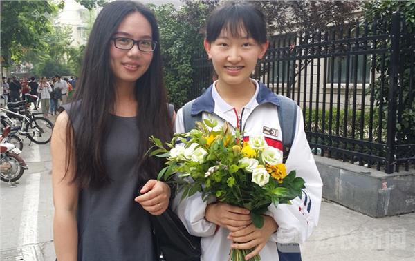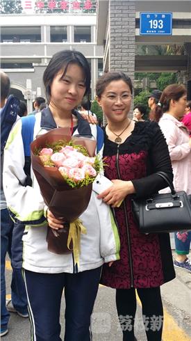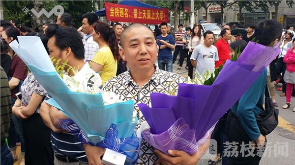 一位姓周的父亲双手捧着两捧鲜花,在人群中格显得外醒目,他说我女儿和外甥女都在三中考场考试,今天自己特别高兴,是作为一名父亲和舅舅的双重身份来给孩子献花的。孩子寒窗苦读12年,今天终于高考结束了,献上这美丽的鲜花略表心意。他含着热泪急动地说:“孩子辛苦了!”