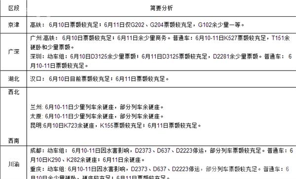 重庆方向: 6月10-13日因水害影响,D2373、D637、D2223停运。