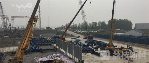 荔枝新闻记者获悉,镇江长江大桥北岸经建设者连日奋战,镇江长江大桥北锚碇沉井最大体量的单次混凝土浇筑完成施工。长100.7米,宽72.1米,地上高度为56米,标准壁厚2米,隔墙厚1.3米,中间共设置48个矩形井孔,北锚碇沉井创下了世界最大沉井纪录。